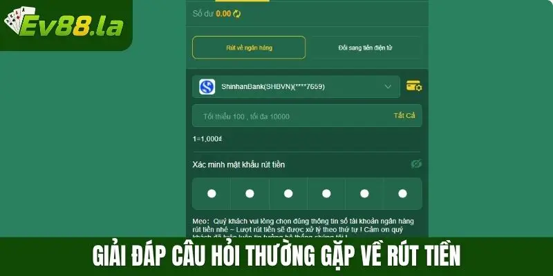 Một số giao dịch rút tiền có thể bị tạm giữ nếu thông tin ngân hàng không trùng khớp với tài khoản đã đăng ký. Người chơi nên kiểm tra lại số tài khoản và thông tin ngân hàng, nếu cần thiết hãy liên hệ CSKH Ev88 để được hướng dẫn kiểm tra chi tiết lịch sử giao dịch.