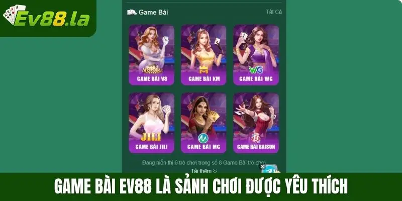 Sảnh game bài Ev88 là nơi hội tụ đa dạng các thể loại bài trực tuyến, từ truyền thống đến hiện đại, đáp ứng nhu cầu giải trí của mọi đối tượng người chơi. Giao diện được thiết kế trực quan, dễ thao tác, giúp người mới lẫn người chơi lâu năm đều cảm thấy thuận tiện khi trải nghiệm.