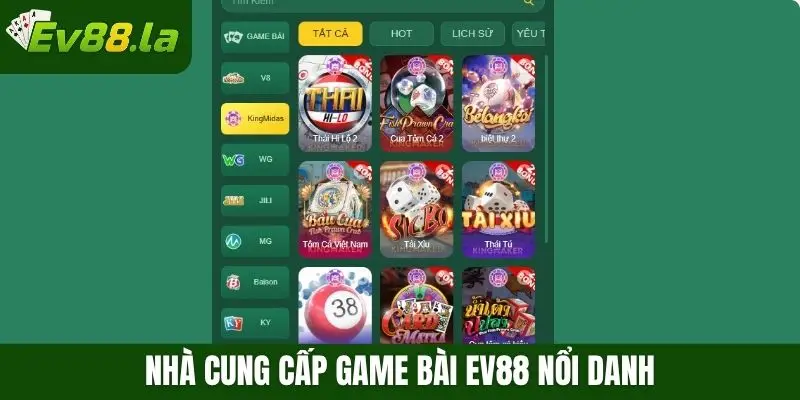 Ev88 hợp tác với nhiều nhà cung cấp phần mềm nổi tiếng trên thế giới, từ Xổ số online đến game bài. Mỗi nhà cung cấp đều có thế mạnh riêng trong thiết kế và vận hành game, mang đến trải nghiệm đa dạng, minh bạch và chất lượng. Nhờ vậy, người chơi sẽ luôn được tiếp cận các sản phẩm đảm bảo về tính công bằng và giải trí.