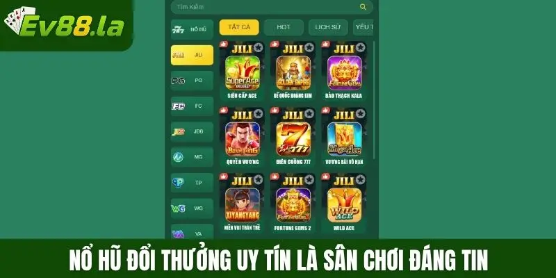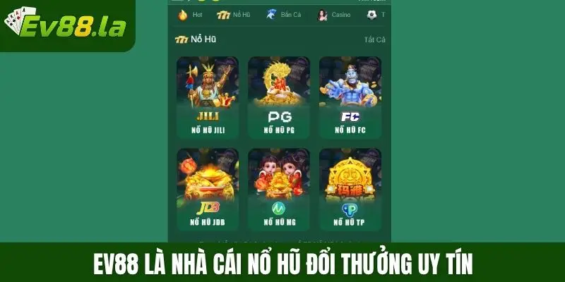 Trong số các nhà cái nổ hũ đổi thưởng uy tín hiện nay, Ev88 nổi bật là địa chỉ đáng tin cậy cho những ai yêu thích slot. Nền tảng cung cấp hàng loạt trò chơi chất lượng, giao diện bắt mắt và dễ thao tác. Điểm cộng lớn là việc giao dịch diễn ra nhanh chóng, giúp người chơi nhận thưởng ngay khi thắng mà không mất thời gian chờ đợi.