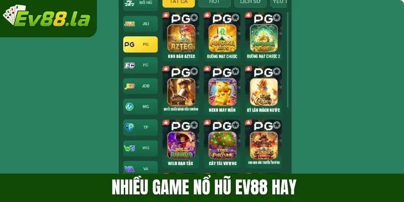 Thay vì giới hạn vài thể loại truyền thống, Ev88 mang đến hàng trăm cỗ máy slot với nội dung khác nhau như viễn tưởng, phiêu lưu, cổ tích, văn hóa châu Á, nhân vật lịch sử hay thế giới kho báu. Mỗi tựa game đều có cốt truyện, biểu tượng, hiệu ứng thưởng và tính năng bổ sung độc đáo.