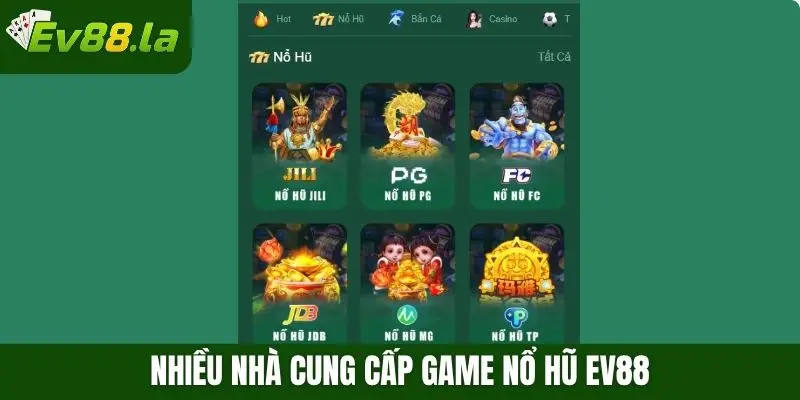 Những slot tại Ev88 được phát triển dựa trên nền tảng của các ông lớn như Pragmatic Play, Habanero, Microgaming, NetEnt hay Playtech. Đây đều là những thương hiệu đã khẳng định uy tín trên thị trường quốc tế nhờ công nghệ hiện đại. Các NPH này cung cấp slot và cả các phiên bản bắn cá Ev88.